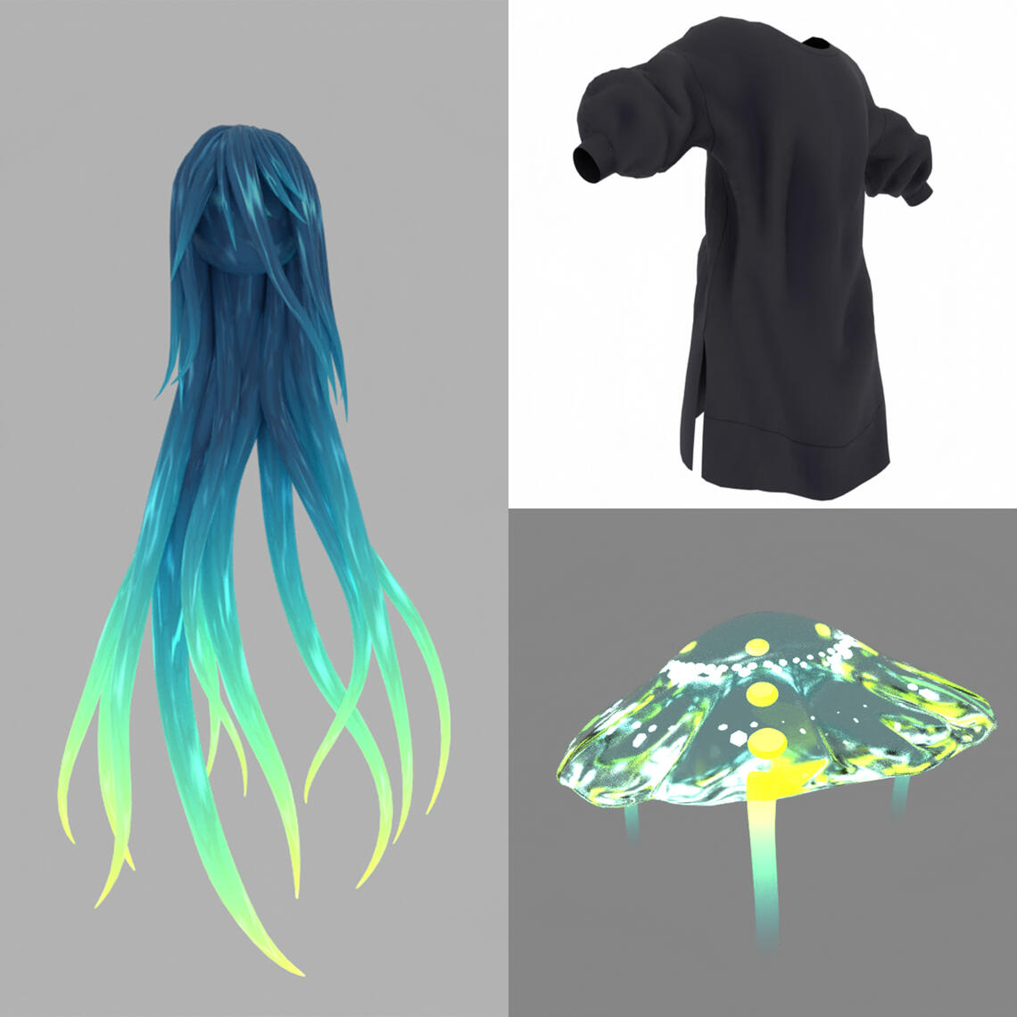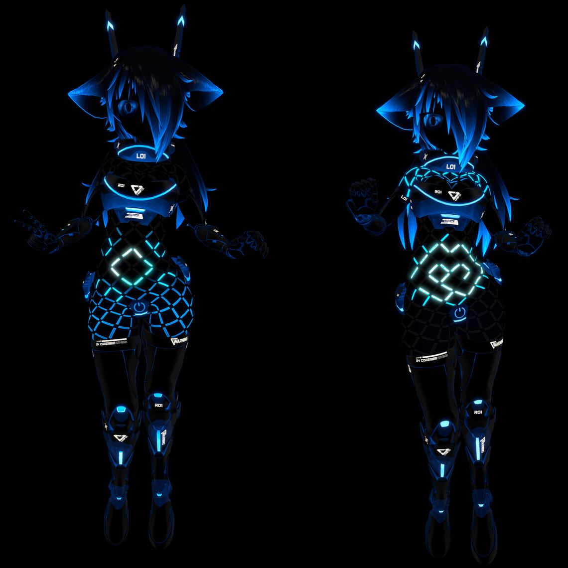 VRChat avatar made by me with everything, except the face, made entirely from scratch.